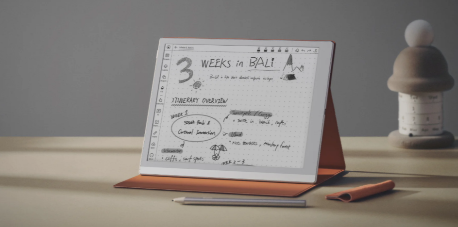 Paired with the InkSense Plus⁸ stylus, a sleek, metal-bodied tool, and USB-C rechargeable. With 4096 pressure levels and tilt sensitivity, you can write with precision, while the integrated side button offers quick access to shortcuts.